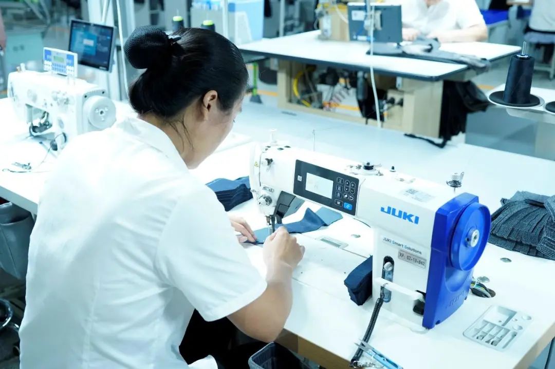 雅戈爾服裝生產(chǎn)車間,通過自動分配生產(chǎn),可顯著減少配對的時間成本,單工位生產(chǎn)效率提高25%