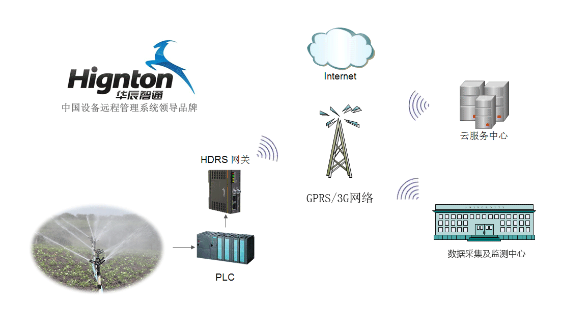 HDRS遠程安全通訊網關通過與灌溉設備的核心控制器(如PLC等)連接,結合3G、WiFi、以太網及GPRS等通信方式并通過華辰智通專有的安全通道實現與服務器連接,實現設備的遠程監控及管理控制,并通過HDRS平臺強大的數據分析能力,分析來自控制器的各種數據,結合客戶自己設定的預警值實現對農作物生長狀況的預警與診斷功能。HDRS遠程安全通訊網關具有體積小巧安裝方式簡單(導軌安裝)等特點,整套系統無需改變灌溉設備的基本原有構造。