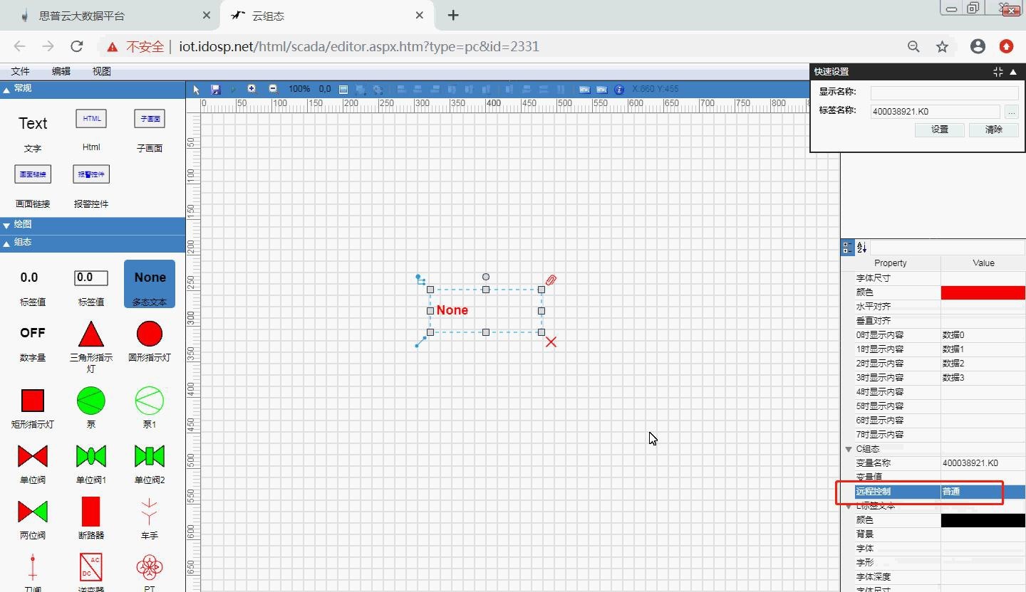 思普云設備組態子畫面跳轉使用教程說明,另一方面通過動畫、曲線等方式將現場數據以動態體現在圖形界面,操作圖形界面即可控制現場設備。